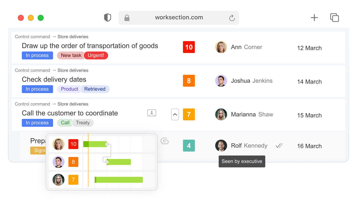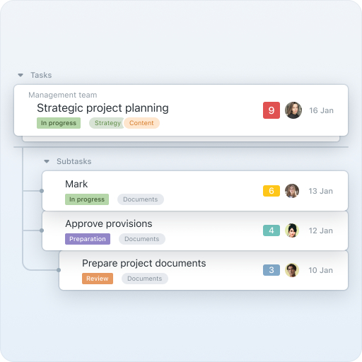 Worksection přináší strukturu do vašich obchodních procesů organizováním projektů do úkolů a rozdělením těchto úkolů na dílčí úkoly pro lepší jasnost a efektivitu.