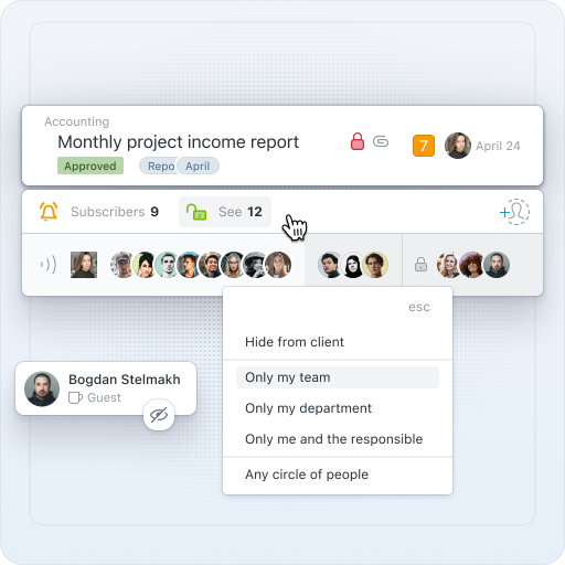 Software pro řízení projektů usnadňuje bezproblémovou spolupráci s klienty a subdodavateli. Přidáním týmu vašeho klienta nebo subdodavatele do projektu můžete společně nastavovat úkoly, diskutovat o pokroku a efektivně sledovat práci. Worksection vám umožňuje řídit, které projekty jsou přístupné klientům, a tím zajišťuje, že citlivé informace zůstanou v bezpečí. Můžete specifikovat, které projekty mohou klienti vidět, pro které mohou nastavovat úkoly, nebo je od nich zcela skrýt. Tato úroveň kontroly podporuje transparentnost a efektivní komunikaci.