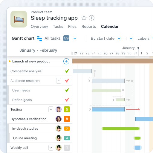Integrace Ganttových diagramů do softwaru pro řízení projektů nabízí obrovské výhody pro plánování, řízení závislostí úkolů a provádění úprav časového plánu. Interaktivní Ganttův diagram zobrazuje všechny úkoly projektu, časové rámce a odpovědné členy týmu na pohodlné časové ose. Můžete nastavit sekvence úkolů, aby se nový úkol automaticky otevřel po dokončení předchozího. Tato funkce zajišťuje, že pracovní toky projektu jsou plynulé a bez přerušení. Ganttovy diagramy také pomáhají identifikovat a řídit závislosti, což usnadňuje úpravu časových plánů, když je to potřeba.