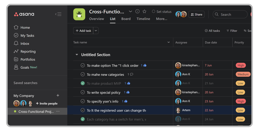 Functionality which is typical for task trackers is available: task cards, calendar, Gantt chart, reminders. Integrations with Jira, popular Google and Microsoft tools are available.