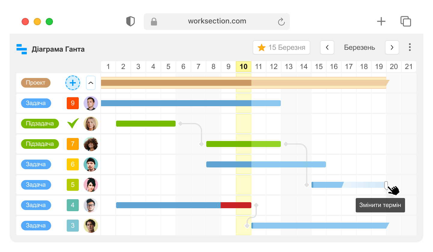 Worksection met automatiquement à jour les tâches liées lorsque les délais changent. Cela vous permet de voir l’état actuel de chaque étape et de réagir rapidement aux retards.