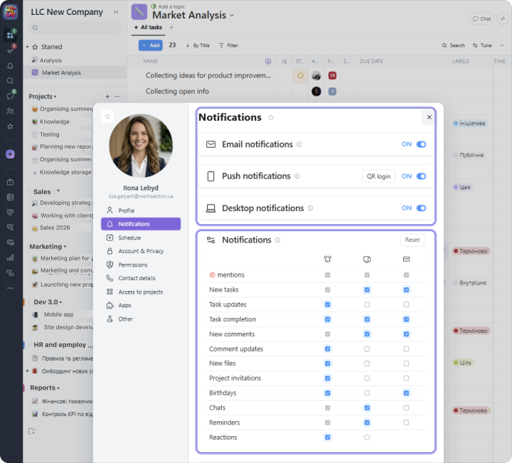 Быстрый доступ к уведомлениям о различных событиях помогает вам понять текущее состояние и принять необходимые решения. Например, уведомления о создании или завершении задач, новые комментарии и многое другое.