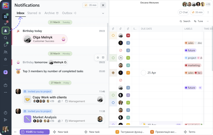 Получение своевременных уведомлений о важных событиях помогает вам быть в курсе текущей деятельности и принимать правильные решения. Например, вы можете получать уведомления, когда создаются или завершаются задачи, когда добавляется новый комментарий и многое другое.