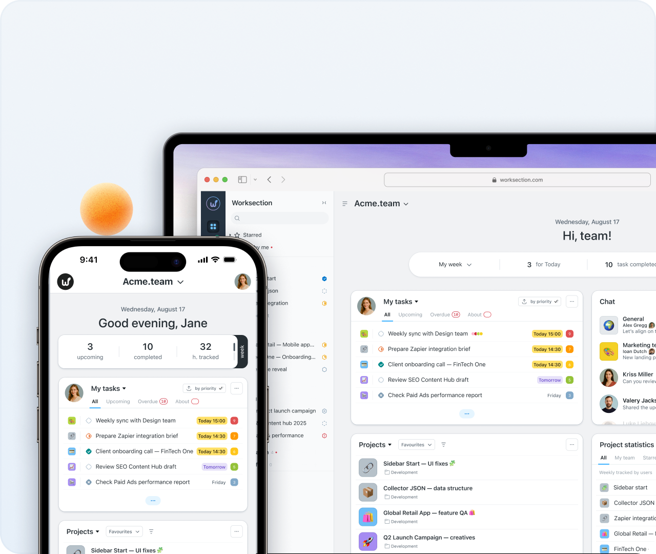 Worksection – 10-100 адамнан тұратын командалар үшін жоба басқару жүйесі. Ішкі чаттары, уақыт бақылаушысы және AI құралдары бар қарапайым тапсырма менеджері. Қызмет көрсету бизнестері үшін сағаттық тарифтер және жоспар/факт. Жеке күнделікті жоспарлаушы, автоматтандырылған есептер және тәулік бойы тікелей қолдау.