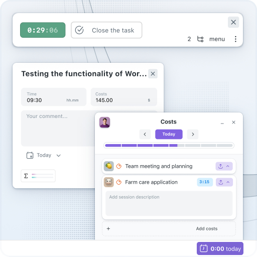 Program do śledzenia czasu pracy Worksection oferuje narzędzia do rejestrowania godzin pracy, monitorowania zadań i generowania raportów. Zegar Start/Stop jest wbudowany bezpośrednio w kartę zadania i jest podświetlany na kolorowo w zależności od czasu trwania — dzięki czemu zespół może na bieżąco zobaczyć obciążenie pracą. Zawsze wiesz, gdzie zasoby zespołu są wydawane, które projekty przynoszą najwyższy zysk i gdzie firma traci czas.