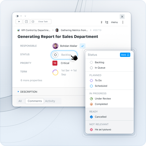 Avem integrări cu email, Google Calendar, Google Drive, Google Docs/Sheets/Presentations, Google Meet, Google Forms, Figma, Slack, Telegram, Viber, KeyCRM, HubSpot, Pipedrive, NetHunt. Folosind REST API și Webhooks, poți introduce orice informație în Worksection sau exporta datele de care ai nevoie. Zapier îți permite să conectezi sute de servicii externe.