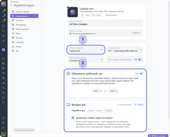 Налаштування Акаунту доступно тільки Власнику і Адміністратору всього акаунту з правом “Доступ до налаштування акаунту”.