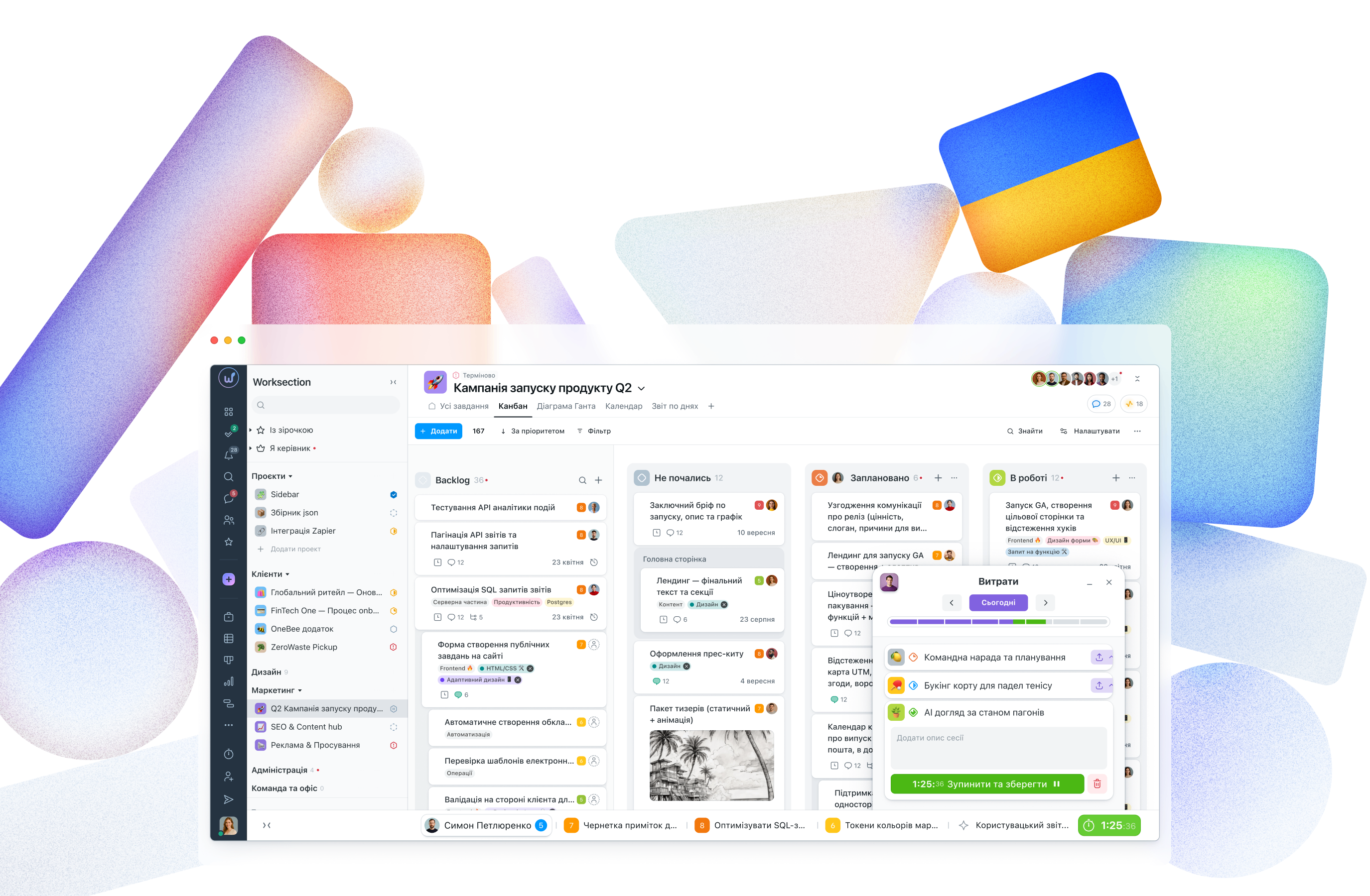 Worksection — це система управління проєктами для команд 10-100 людей. Простий таск-менеджер з вбудованими чатами, тайм-трекером та ШІ-інструментами. Погодинка і план/факт для сервісних бізнесів. Персональний план дня, автоматизовані звіти та жива підтримка 24/7.